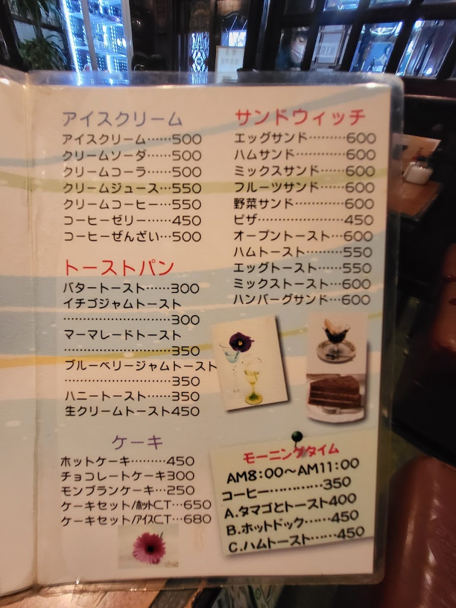 The menu features delightful offerings like their mix sandwich set, which showcases fluffy eggs, savory ham, and crisp lettuce, all artfully layered between toasted bread. Priced at an astonishing 680 yen, it’s both filling and delicious. Coupled with their refreshingly smooth iced coffee, you’re in for a unique gastronomic experience.